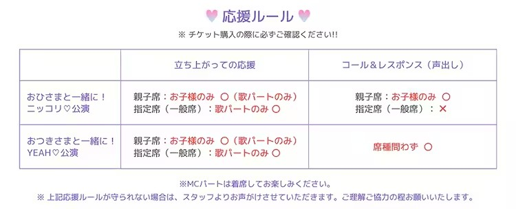 - 与月亮一起!Yeah♡公演:开场17:00,开演18:00